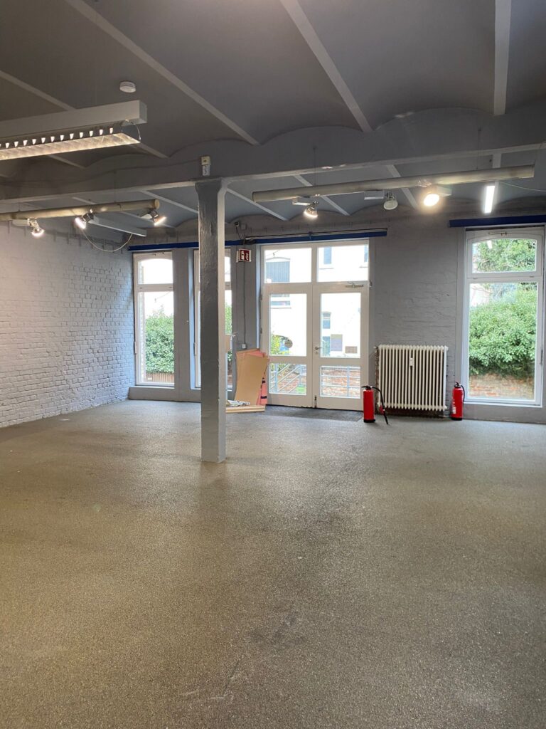 Der im Erdgeschoss liegende Raum ist über vier Treppenstufen erreichbar. Zusammen mit einem angrenzenden kleinen Raum ist er geeignet als Ladenlokal, Werkstatt, Büro etc.
